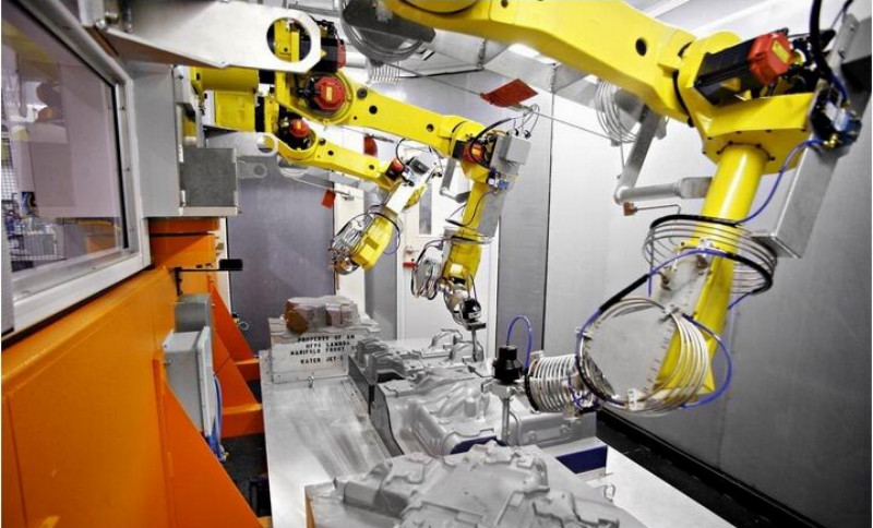 恰逢此時(shí),安徽新境界自動(dòng)化技術(shù)有限公司新產(chǎn)品XJJ-DRV1型全自動(dòng)機(jī)器人打磨系統(tǒng)應(yīng)運(yùn)而生。該產(chǎn)品以其顯著的七軸六聯(lián)動(dòng)特性及性能范圍廣得到廣泛應(yīng)用,將打磨作業(yè)的上料、打磨、吹氣、噴淋、排屑、下料等工序置于一個(gè)全封閉環(huán)境,凈化了工廠環(huán)境,有效減少了職業(yè)病與人身安全等隱患的發(fā)生率。歷時(shí)近兩年的時(shí)間,借鑒國外在該領(lǐng)域應(yīng)用的先進(jìn)技術(shù),同時(shí)結(jié)合公司多年工業(yè)機(jī)器人打磨技術(shù)經(jīng)驗(yàn),成功研發(fā)具有自主知識產(chǎn)權(quán)的全自動(dòng)機(jī)器人打磨系統(tǒng)新產(chǎn)品。