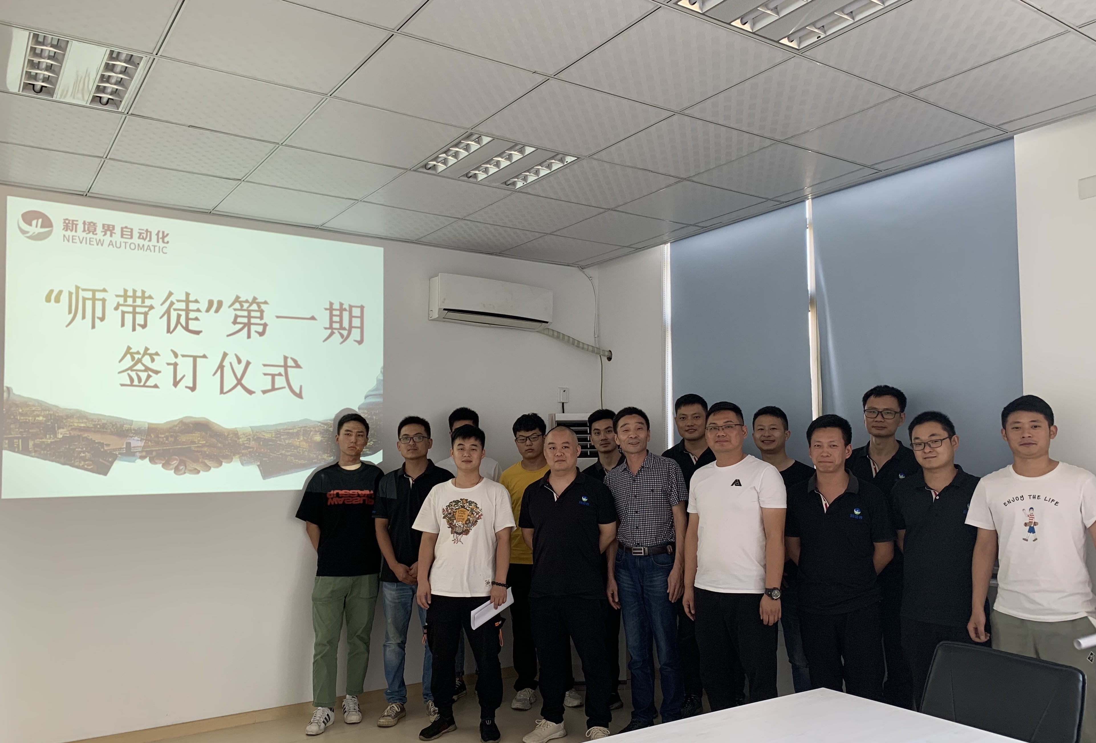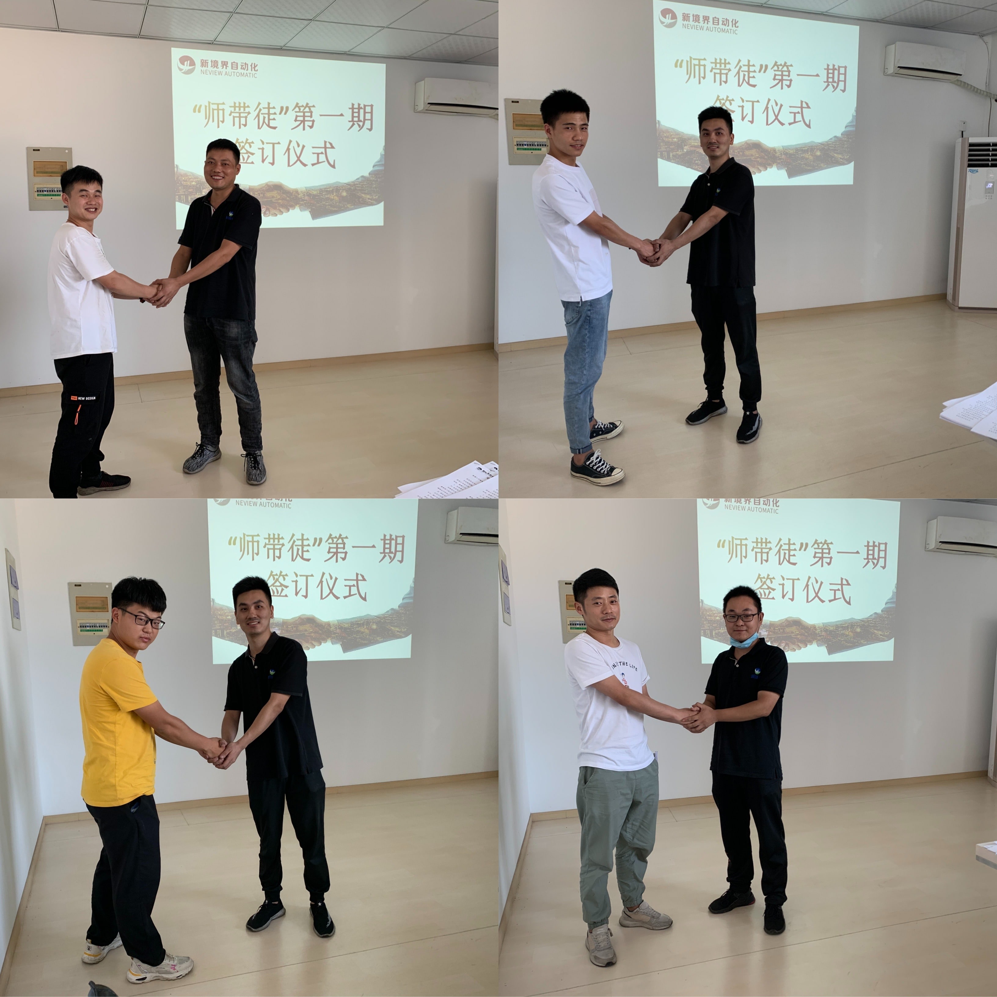 為加強公司技能型人才隊伍建設,發(fā)揚“傳、幫、帶”的優(yōu)良傳統(tǒng),促進員工知識水平和技能水平的持續(xù)提升,新境界自動化技術有限公司發(fā)布了《師帶徒的管理辦法》,搭建人才發(fā)展的平臺。8.13日下午,公司舉行了首屆“師帶徒”師徒互認儀式,活動由人事行政經(jīng)理葉建芳主持,常務副總晁明俊以及結對師徒參加。